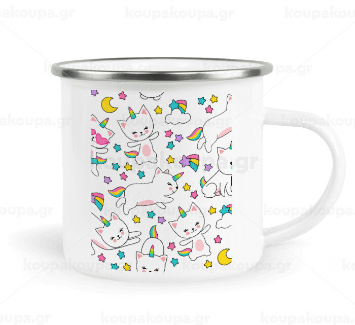 Cats unicorns, Κούπα Μεταλλική εμαγιέ λευκη 360ml