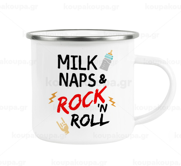 milk naps and Rock n' Roll, Κούπα Μεταλλική εμαγιέ λευκη 360ml