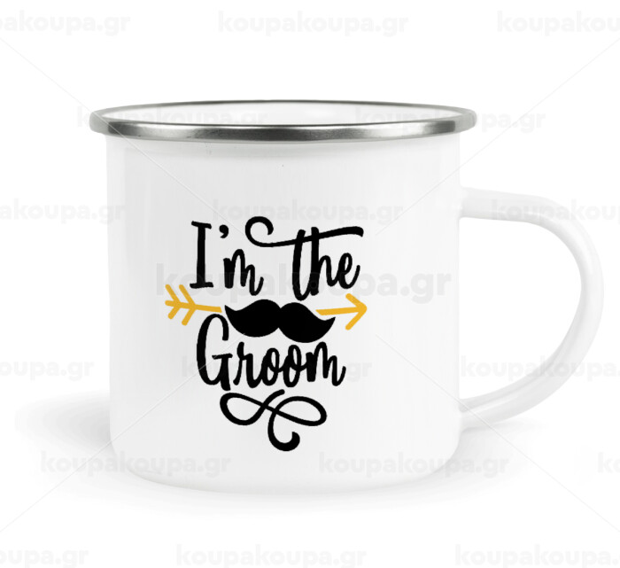 I'm the groom mustache, Κούπα Μεταλλική εμαγιέ λευκη 360ml