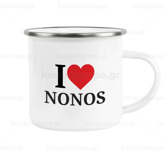 I Love ΝΟΝΟΣ, Κούπα Μεταλλική εμαγιέ λευκη 360ml