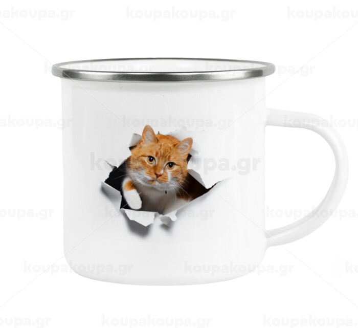Cat cracked, Κούπα Μεταλλική εμαγιέ λευκη 360ml