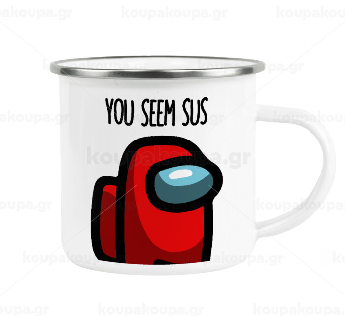 Among US, you seem sus, Κούπα Μεταλλική εμαγιέ λευκη 360ml