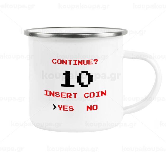 Continue? YES - NO, Κούπα Μεταλλική εμαγιέ λευκη 360ml