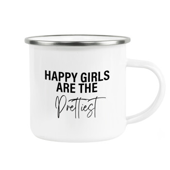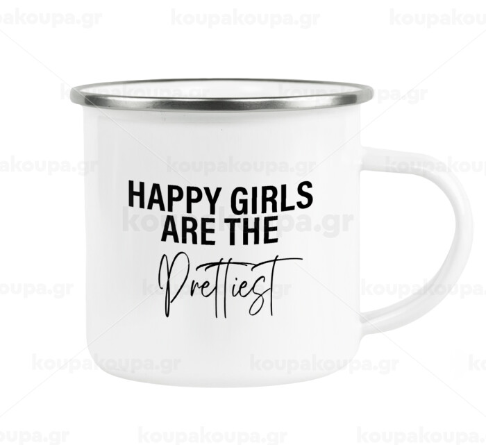 Happy girls are the prettiest, Κούπα Μεταλλική εμαγιέ λευκη 360ml