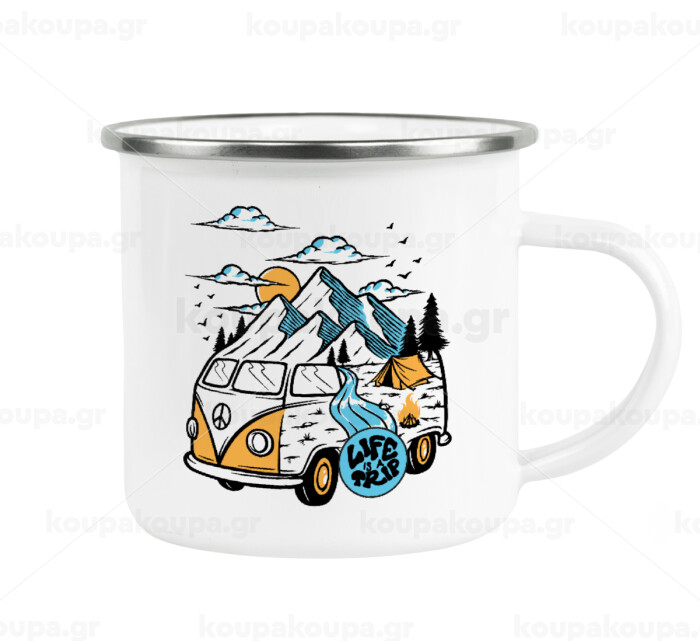 Life is a trip, Κούπα Μεταλλική εμαγιέ λευκη 360ml