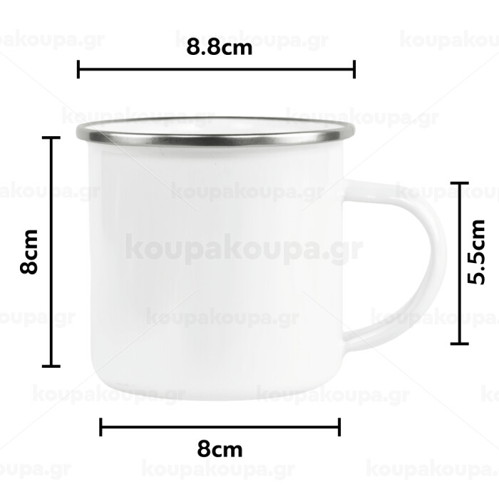 Μεταλλική κούπα εμαγιέ υψηλής ποιότητας φτιαγμένη από βαρέως τύπου χάλυβα και παχύτερο σμάλτο για μεγαλύτερη ανθεκτικότητα εξαιρετικής ποιότητας με χείλος σε ασημί χρώμα. Κατάλληλη για ζεστά και κρύα ροφήματα. Προτεινόμενο πλύσιμο στο χέρι.