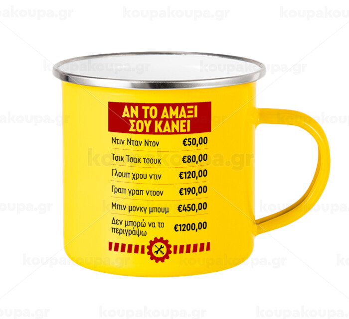 Annoying Noise in Car, Κούπα Μεταλλική εμαγιέ Κίτρινη 360ml
