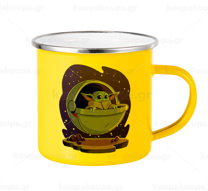 Baby Yoda mandalorian, Κούπα Μεταλλική εμαγιέ Κίτρινη 360ml