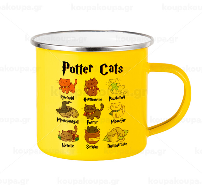 Potter Cats, Κούπα Μεταλλική εμαγιέ Κίτρινη 360ml