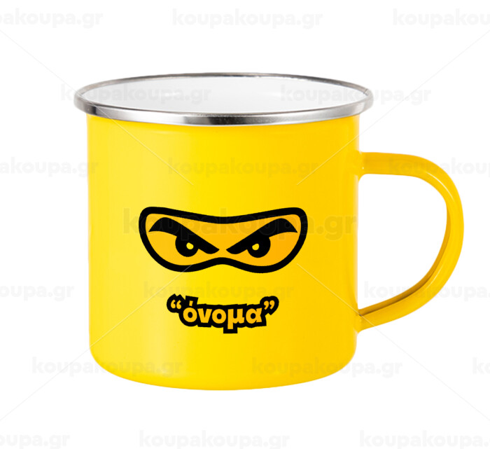 Ninja Eyes με όνομα, Κούπα Μεταλλική εμαγιέ Κίτρινη 360ml