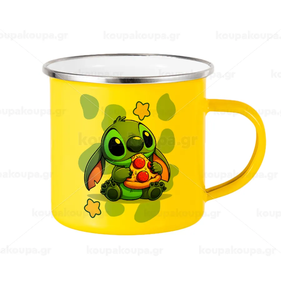 Stitch Pizza, Κούπα Μεταλλική εμαγιέ Κίτρινη 360ml