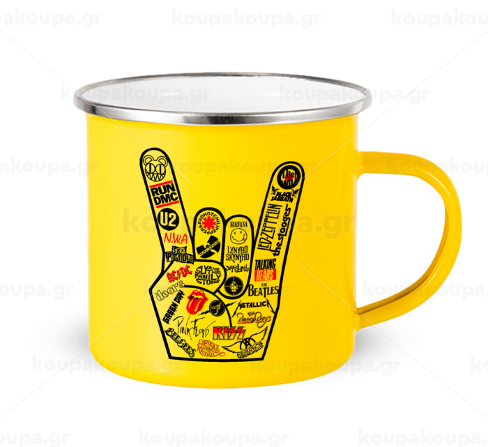 Best Rock Bands hand, Κούπα Μεταλλική εμαγιέ Κίτρινη 360ml