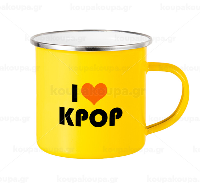 I Love KPOP, Κούπα Μεταλλική εμαγιέ Κίτρινη 360ml