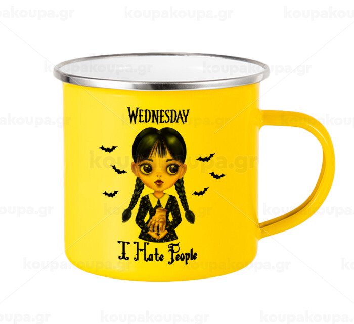 Wednesday Adams, i hate people, Κούπα Μεταλλική εμαγιέ Κίτρινη 360ml
