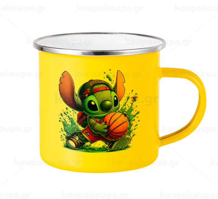 Stitch Basketball, Κούπα Μεταλλική εμαγιέ Κίτρινη 360ml