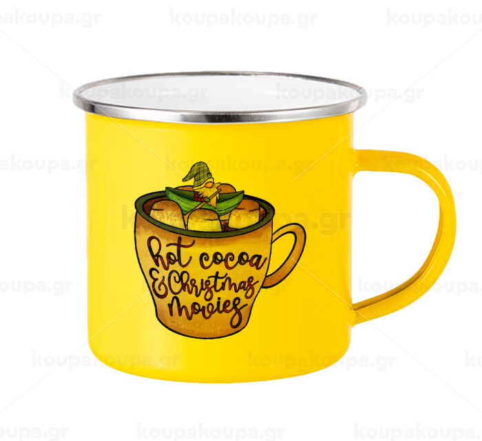 Hot Cocoa And Christmas Movies, Κούπα Μεταλλική εμαγιέ Κίτρινη 360ml