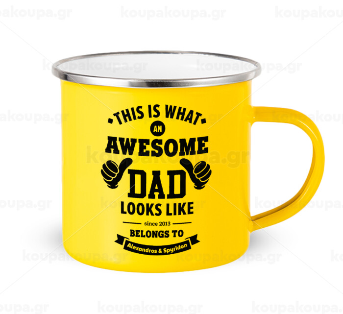 This is what an Awesome DAD looks like, Κούπα Μεταλλική εμαγιέ Κίτρινη 360ml