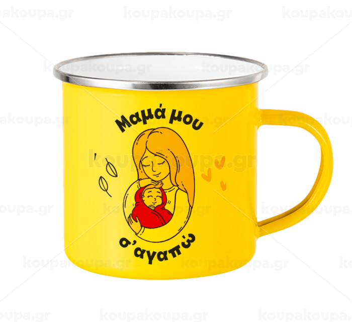 Μανούλα σ'αγαπώ αγκαλιά!, Κούπα Μεταλλική εμαγιέ Κίτρινη 360ml