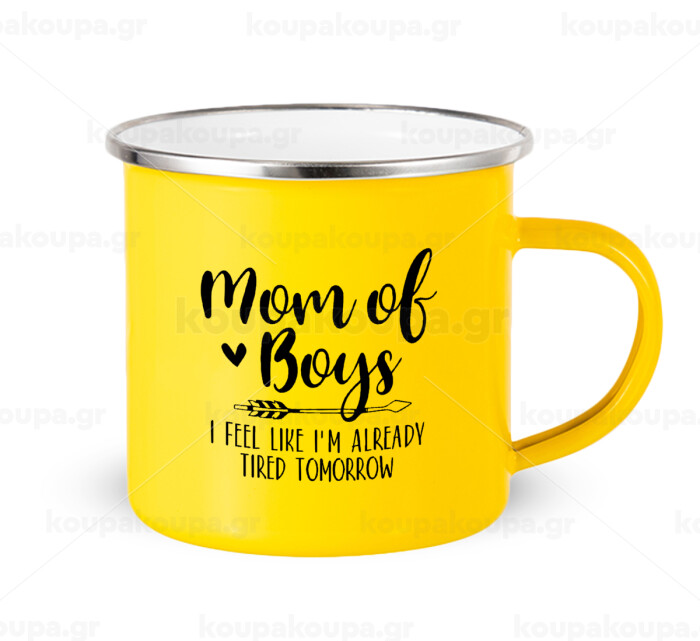 Mom of boys i feel like im already tired tomorrow, Κούπα Μεταλλική εμαγιέ Κίτρινη 360ml