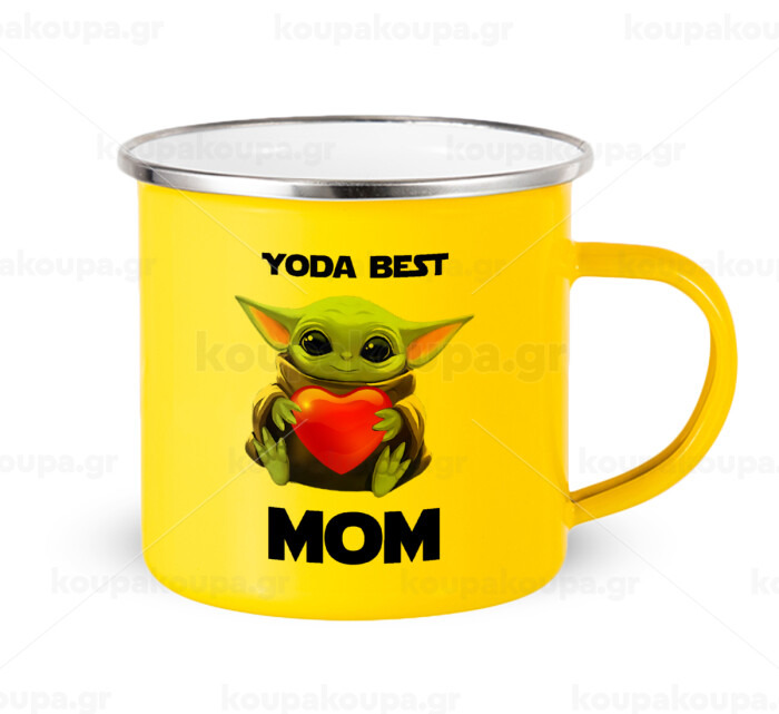 Yoda Best mom, Κούπα Μεταλλική εμαγιέ Κίτρινη 360ml