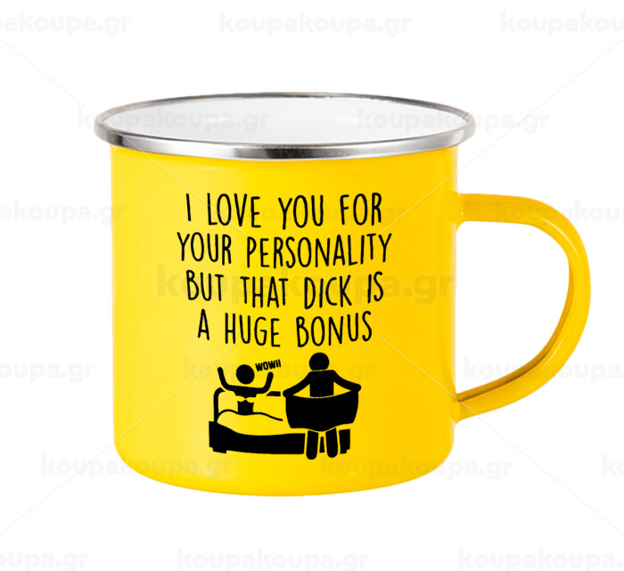 I Love You for Your Personality But that D... Is a Huge Bonus , Κούπα Μεταλλική εμαγιέ Κίτρινη 360ml
