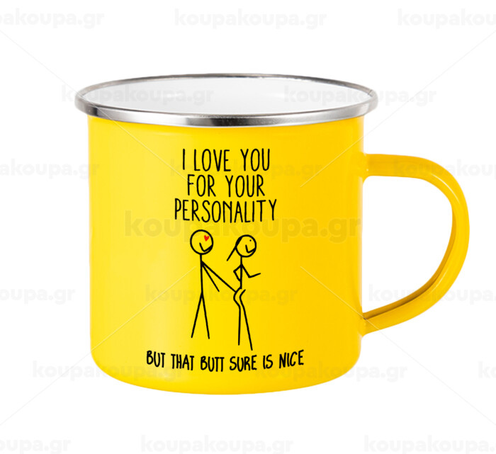 I Love you for your personality, Κούπα Μεταλλική εμαγιέ Κίτρινη 360ml