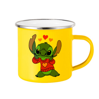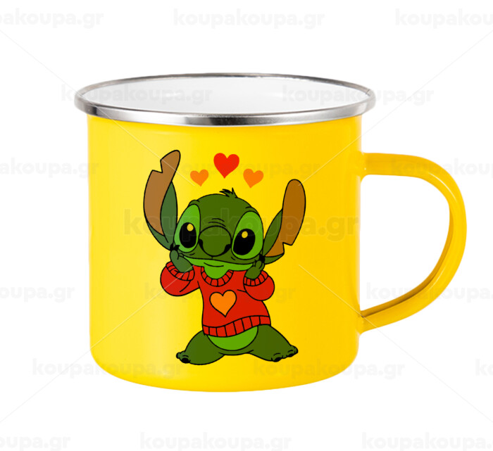 Stitch heart, Κούπα Μεταλλική εμαγιέ Κίτρινη 360ml