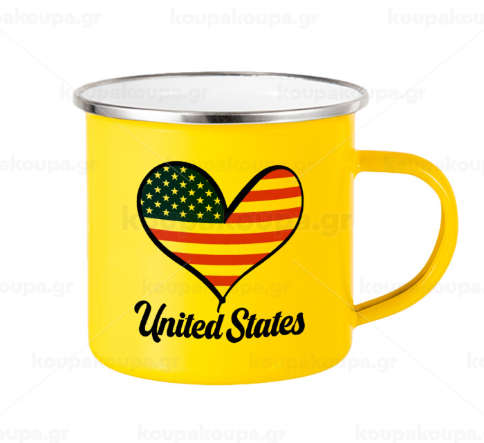 USA flag, Κούπα Μεταλλική εμαγιέ Κίτρινη 360ml