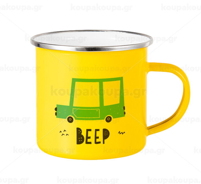 Car BEEP..., Κούπα Μεταλλική εμαγιέ Κίτρινη 360ml