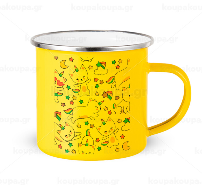 Cats unicorns, Κούπα Μεταλλική εμαγιέ Κίτρινη 360ml