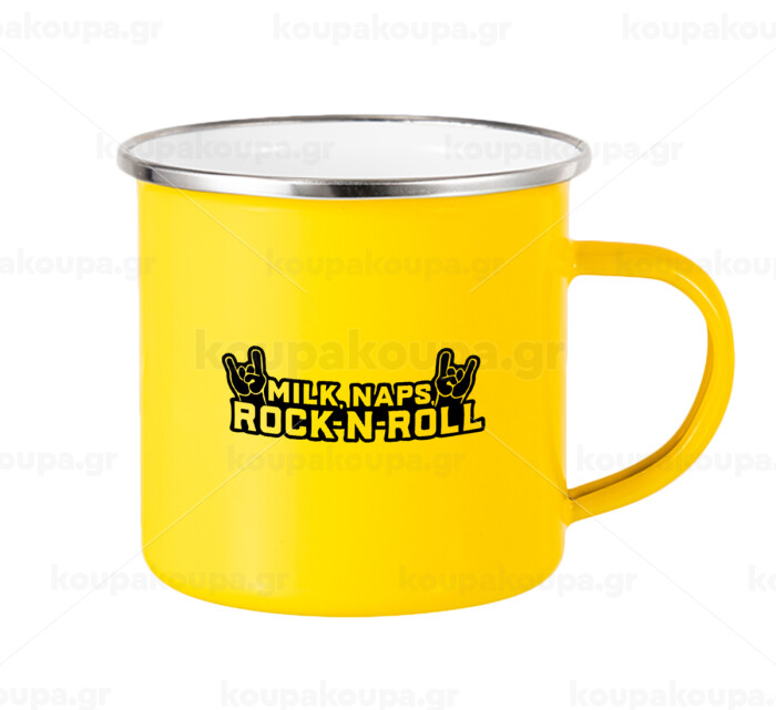 Milk, Naps, Rock N Roll, Κούπα Μεταλλική εμαγιέ Κίτρινη 360ml