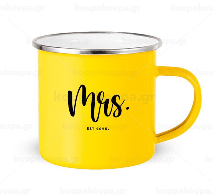 Mr & Mrs (Mrs), Κούπα Μεταλλική εμαγιέ Κίτρινη 360ml