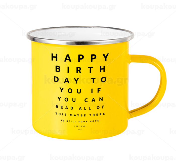 EYE tester happy birthday., Κούπα Μεταλλική εμαγιέ Κίτρινη 360ml