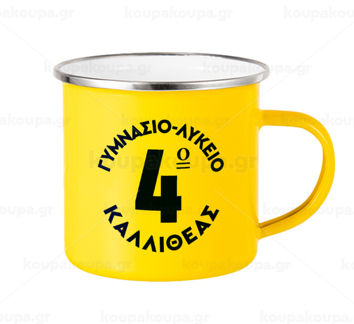 Έμβλημα Σχολικό μπλε κλασικό, Κούπα Μεταλλική εμαγιέ Κίτρινη 360ml