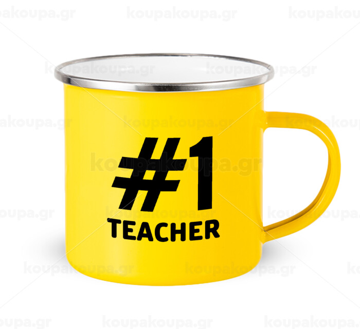 #1 teacher, Κούπα Μεταλλική εμαγιέ Κίτρινη 360ml