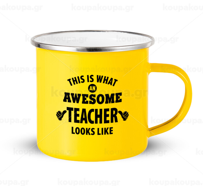 This is what an awesome teacher looks like hands!!! , Κούπα Μεταλλική εμαγιέ Κίτρινη 360ml