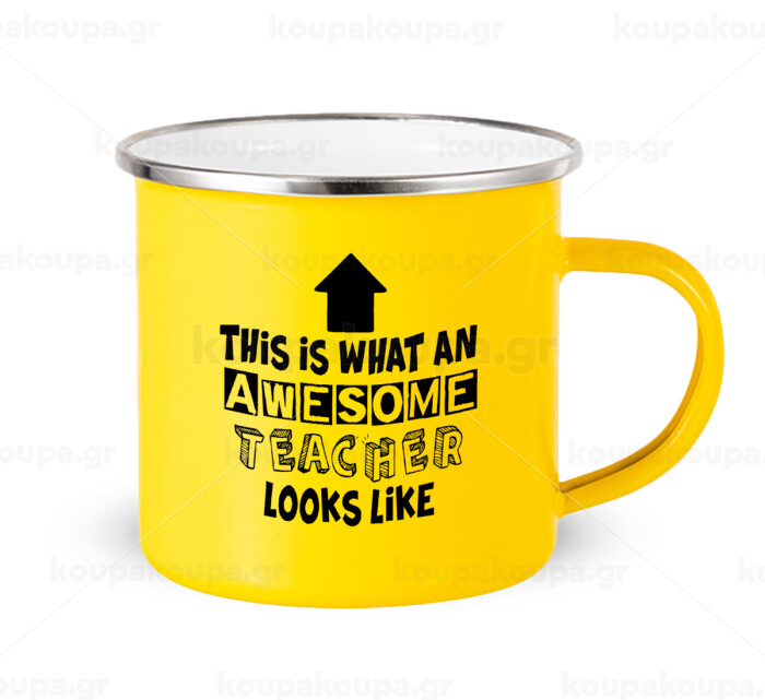 This is what an awesome teacher looks like!!! , Κούπα Μεταλλική εμαγιέ Κίτρινη 360ml