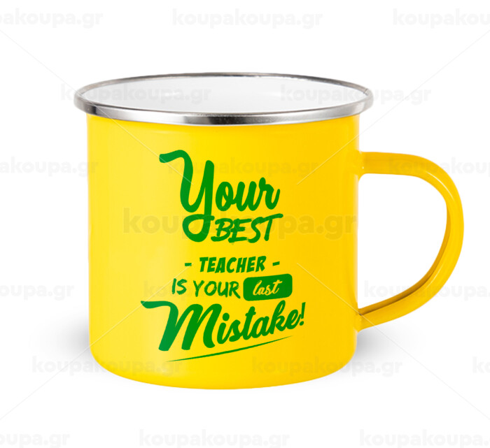 Your best teacher is your last mistake, Κούπα Μεταλλική εμαγιέ Κίτρινη 360ml
