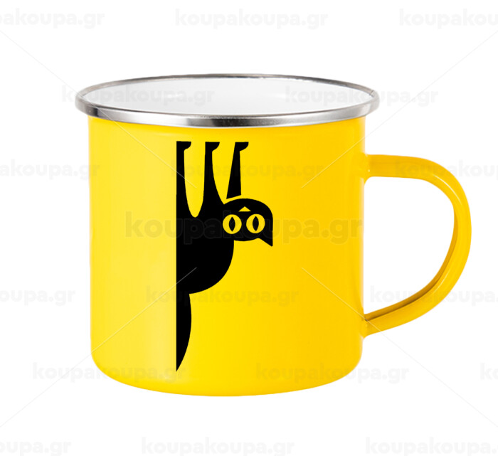 Cat upside down, Κούπα Μεταλλική εμαγιέ Κίτρινη 360ml