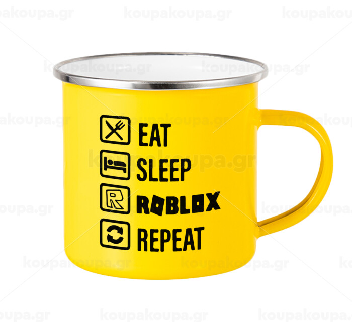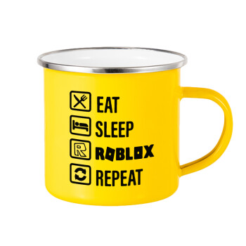 Eat, Sleep, Roblox, Repeat, Κούπα Μεταλλική εμαγιέ Κίτρινη 360ml