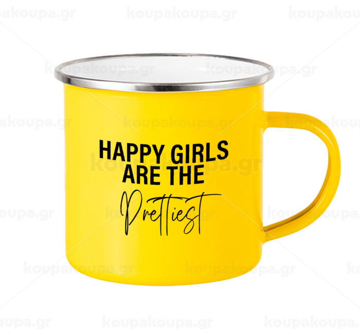 Happy girls are the prettiest, Κούπα Μεταλλική εμαγιέ Κίτρινη 360ml