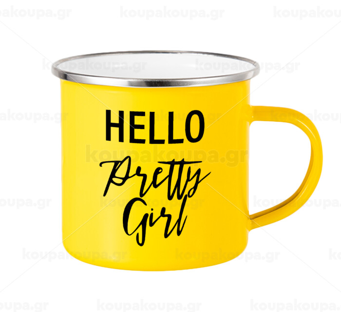 Hello pretty girl, Κούπα Μεταλλική εμαγιέ Κίτρινη 360ml