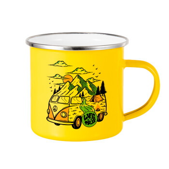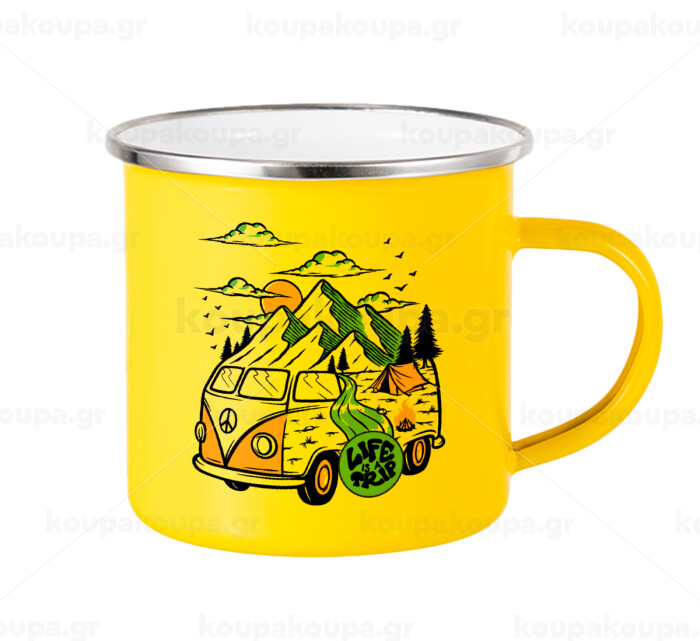 Life is a trip, Κούπα Μεταλλική εμαγιέ Κίτρινη 360ml