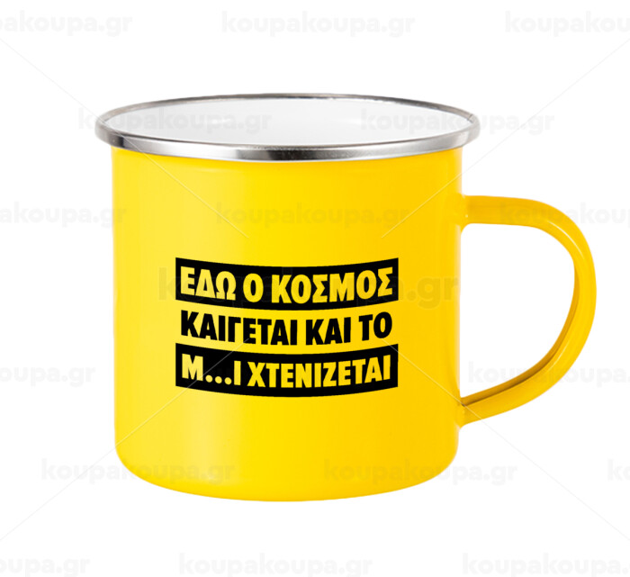 Εδώ ο κόσμος καίγεται και το Μ....Ι χτενίζεται, Κούπα Μεταλλική εμαγιέ Κίτρινη 360ml