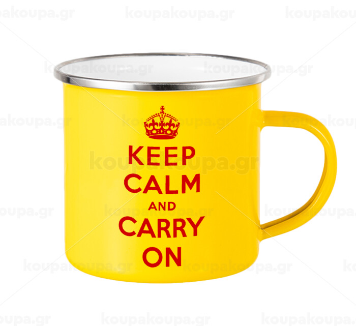 KEEP CALM  and carry on, Κούπα Μεταλλική εμαγιέ Κίτρινη 360ml