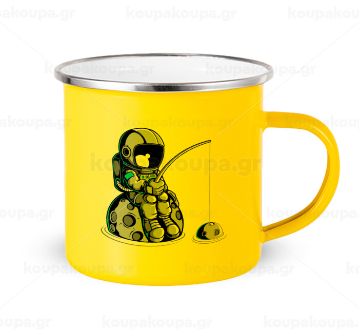 Αστροναύτης ψαρεύει στο διάστημα, Κούπα Μεταλλική εμαγιέ Κίτρινη 360ml