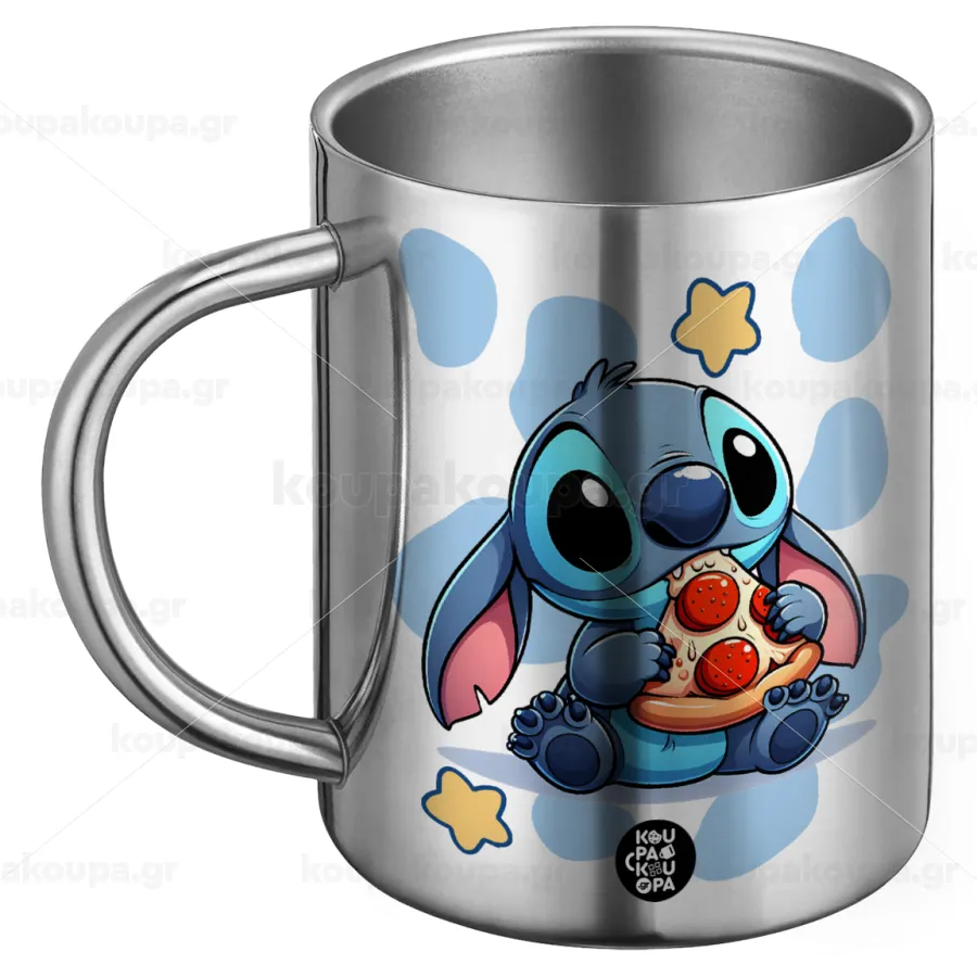 Stitch Pizza, Ανοξείδωτη Μεταλλική Κούπα 450ml - Διπλού Τοιχώματος