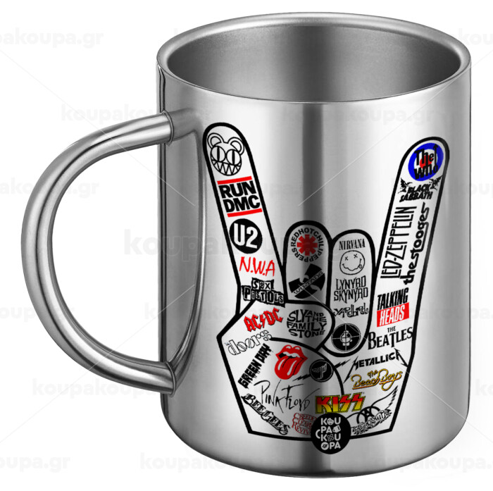 Best Rock Bands hand, Ανοξείδωτη Μεταλλική Κούπα 450ml - Διπλού Τοιχώματος