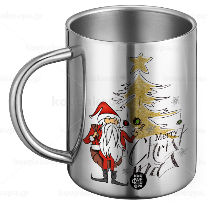 Santa Claus gold, Ανοξείδωτη Μεταλλική Κούπα 450ml - Διπλού Τοιχώματος