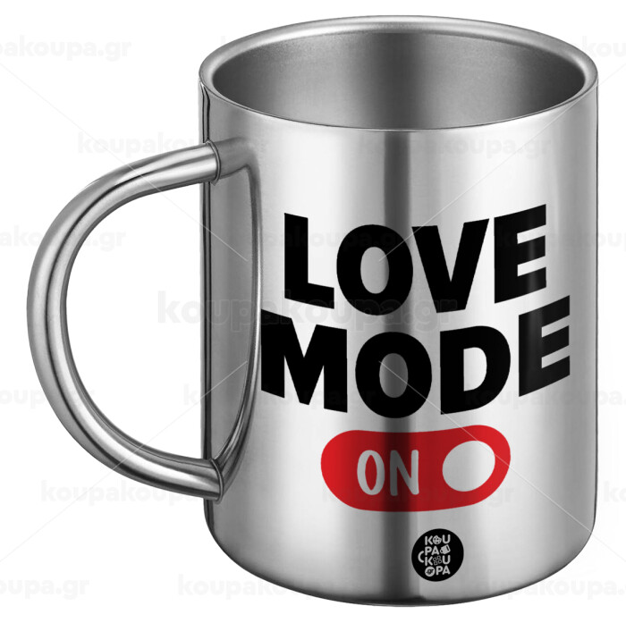 LOVE MODE ON, Ανοξείδωτη Μεταλλική Κούπα 450ml - Διπλού Τοιχώματος